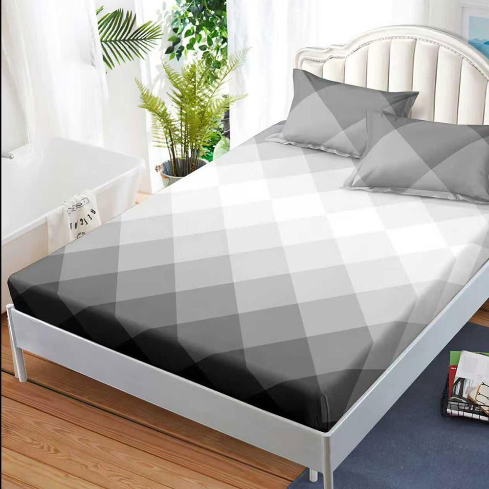 Cearceaf din Bumbac Satinat cu Elastic - 180x200 + 2 Fete Perna - Gri Geometric - CEFN_K008B