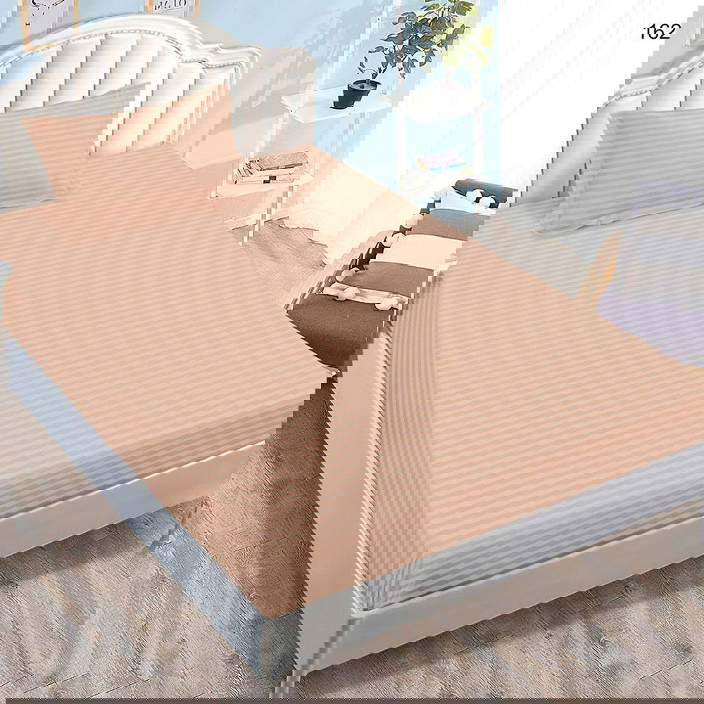 Cearceaf din Damasc cu Elastic - 90x200 + 1 Fata Perna - Piersica - CEDX_K122
