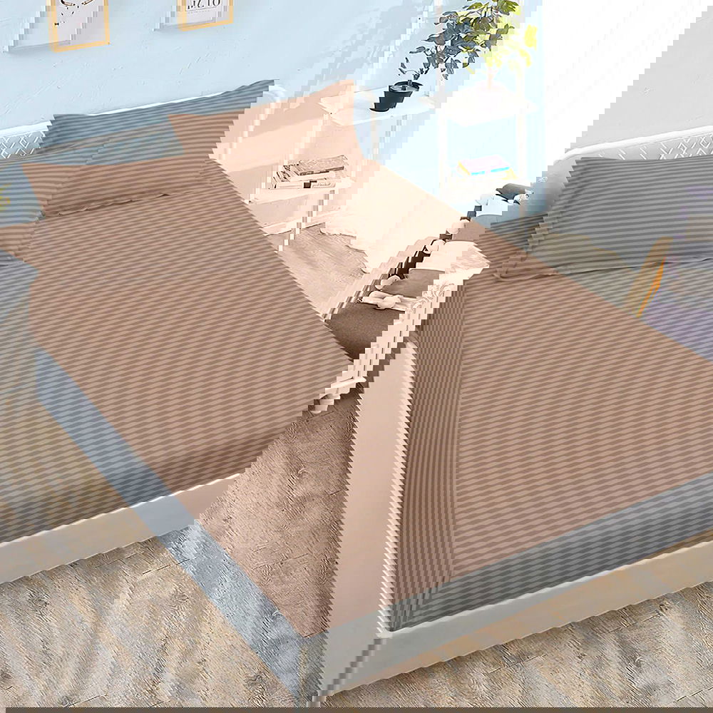 Cearceaf din Damasc Premium cu Elastic - 120/140x200 + 2 Fete Perna - Maro Inchis - CEDZ_K096