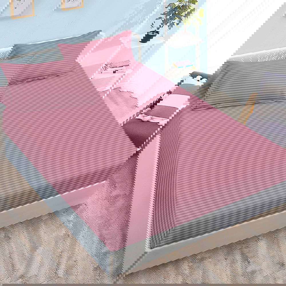Cearceaf din Damasc Premium cu Elastic - 120/140x200 + 2 Fete Perna - Roz Purpuriu - CEDZ_L126