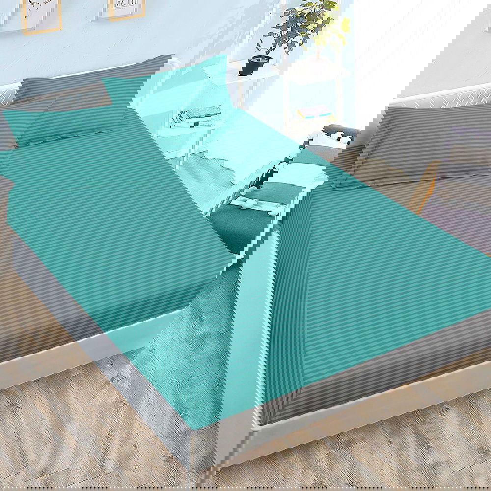 Cearceaf din Damasc Premium cu Elastic - 120/140x200 + 2 Fete Perna - Turcoaz - CEDZ_L125