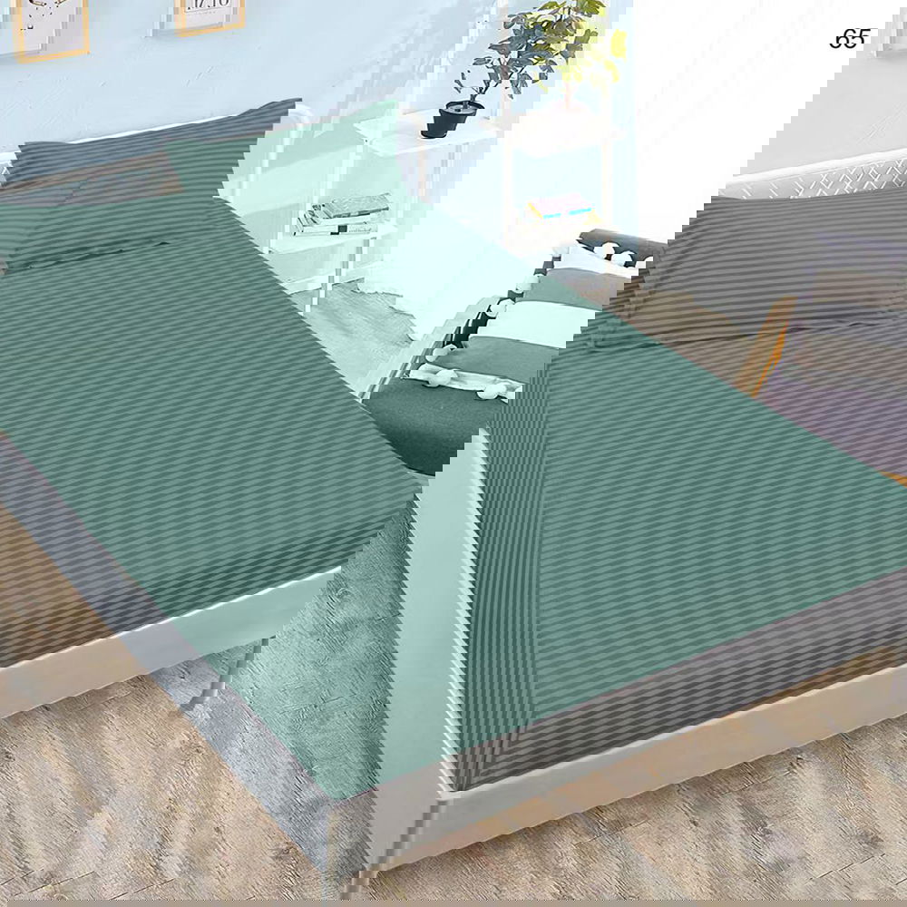 Cearceaf din Damasc Premium cu Elastic - 120/140x200 + 2 Fete Perna - Verde Intens - CEDZ0834