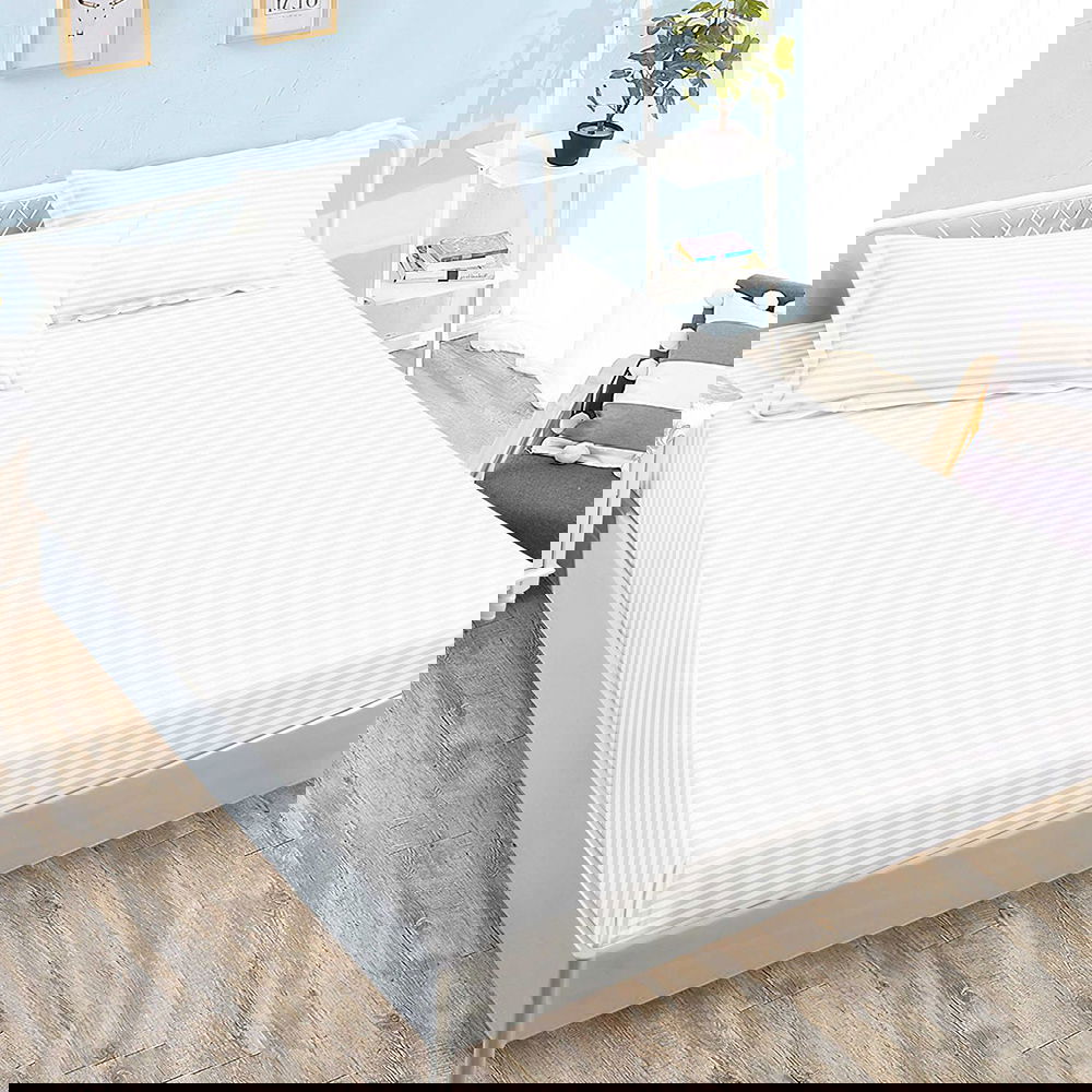 Cearceaf din Damasc Premium cu Elastic - 140/160x200 + 2 Fete Perna - Alb - CEDM_L095A