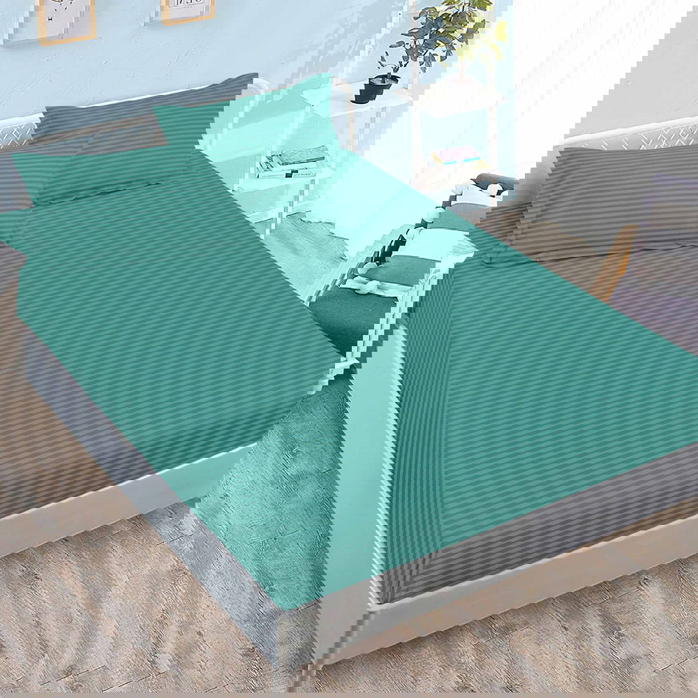 Cearceaf din Damasc Premium cu Elastic - 140/160x200 + 2 Fete Perna - Verde Forest Deschis - CEDS_K074