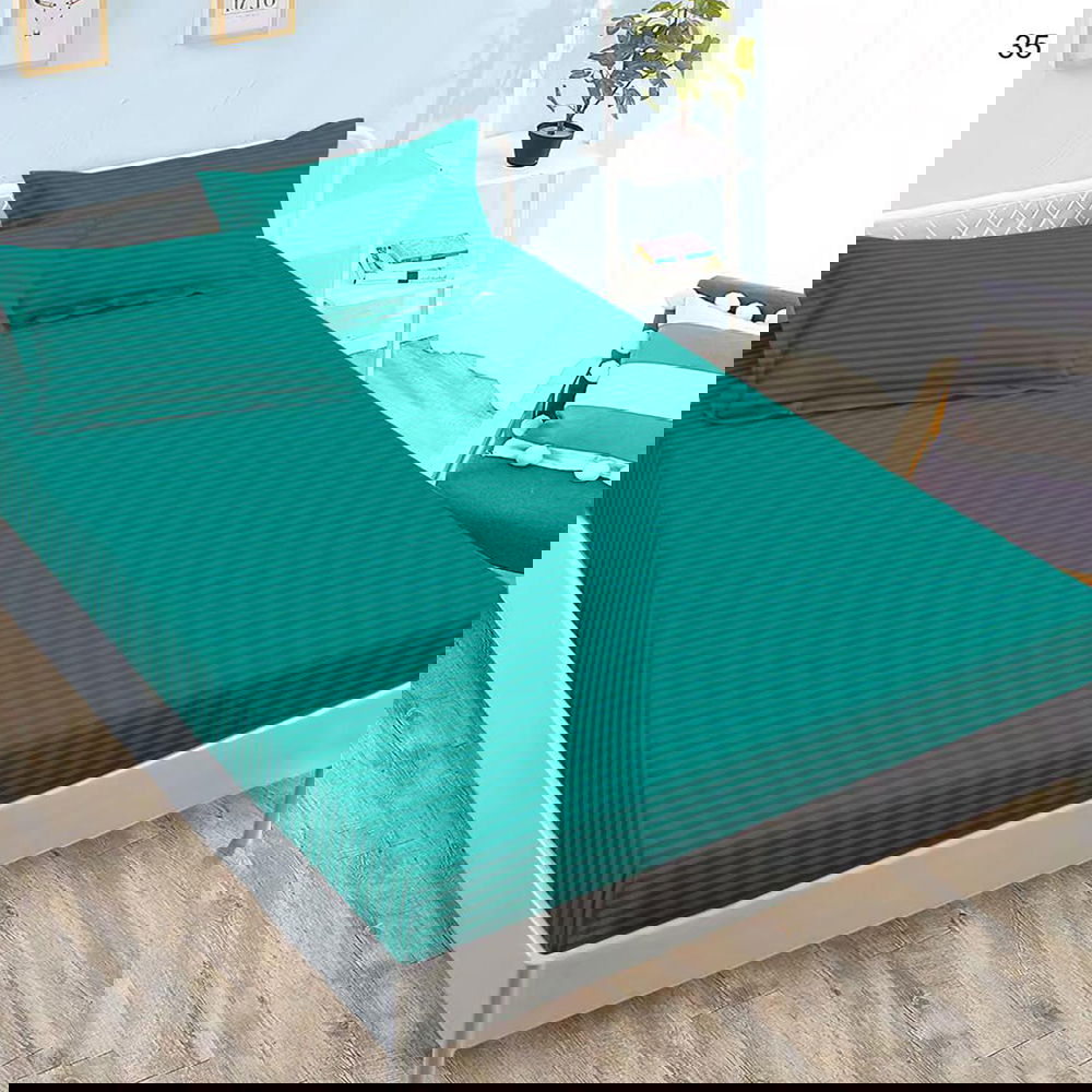 Cearceaf din Damasc Premium cu Elastic - 140/160x200 + 2 Fete Perna - Verde Deschis - CEDS_K084