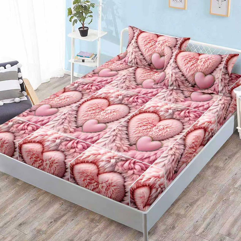 Cearceaf din Finet cu Elastic - 160/180x200 + 2 Fete Perna - Inimioare Roz Cocolino - CEFN_K035D