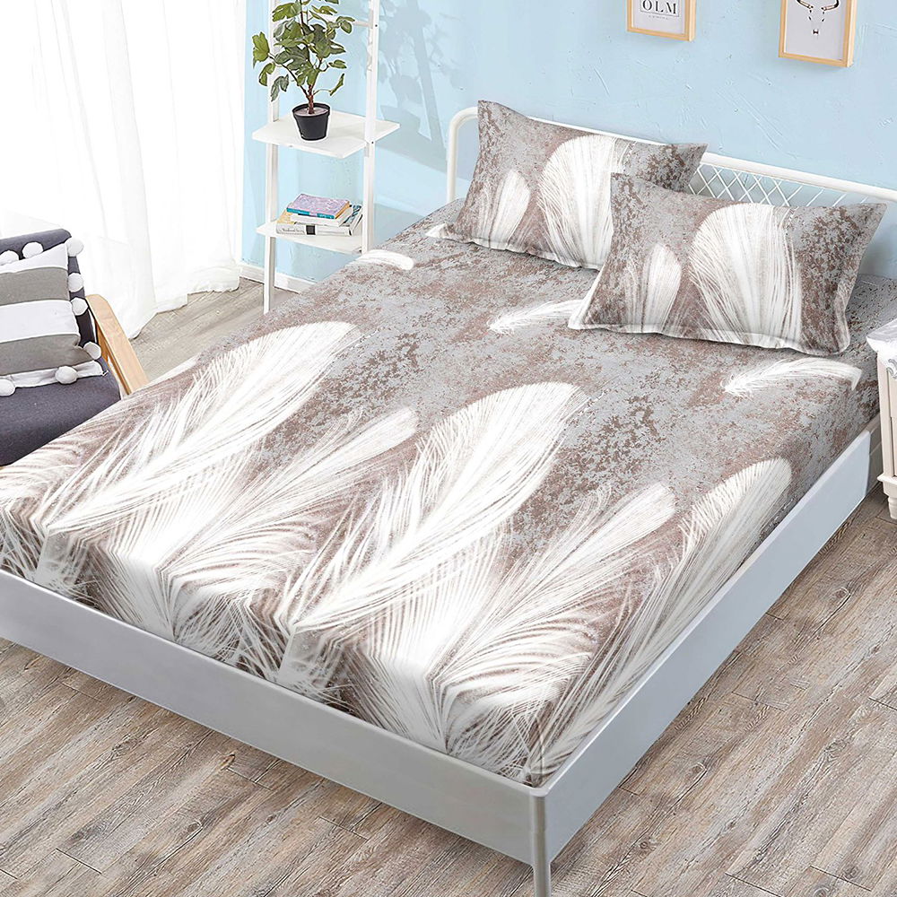 Cearceaf din Finet cu Elastic - 160/180x200 + 2 Fete Perna - Maro cu Pene - CEFN_K022C