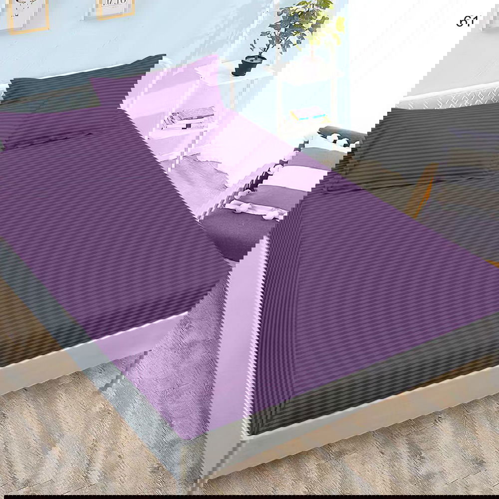 Cearceaf din Damasc Premium cu Elastic - 120/140x200 + 2 Fete Perna - Mov - CEDZ_L131B