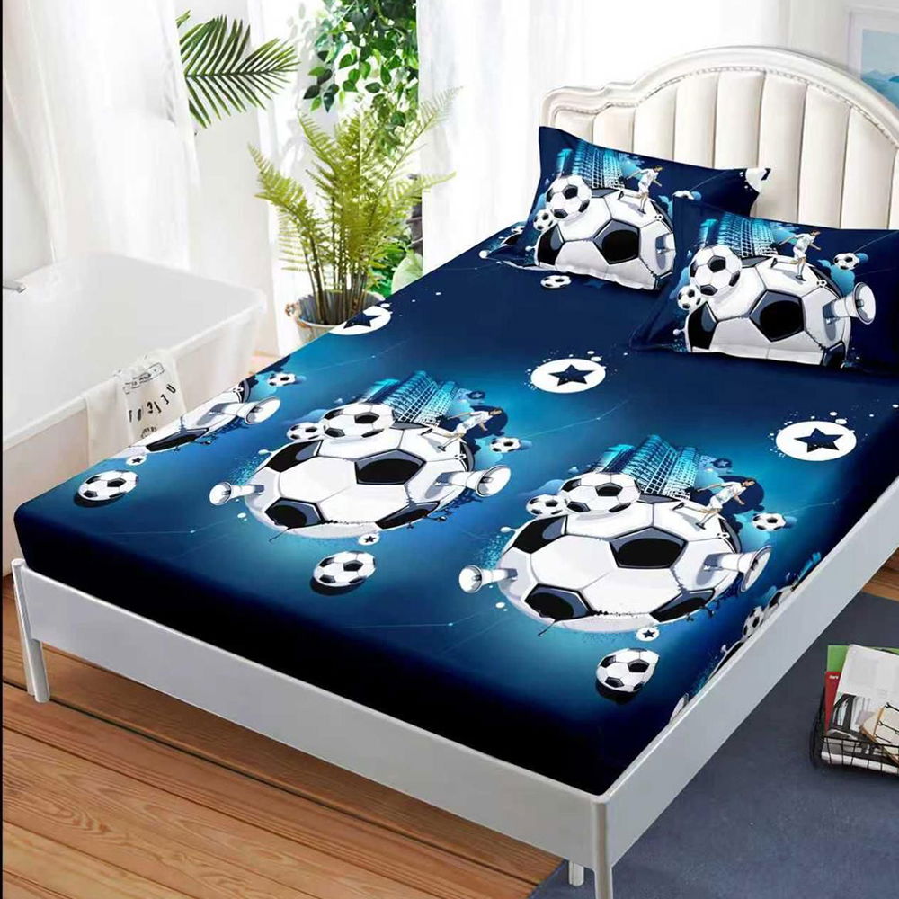 Cearceaf din Bumbac Satinat cu Elastic - 180x200 + 2 Fete Perna - Minge Fotbal - CEFN_K010