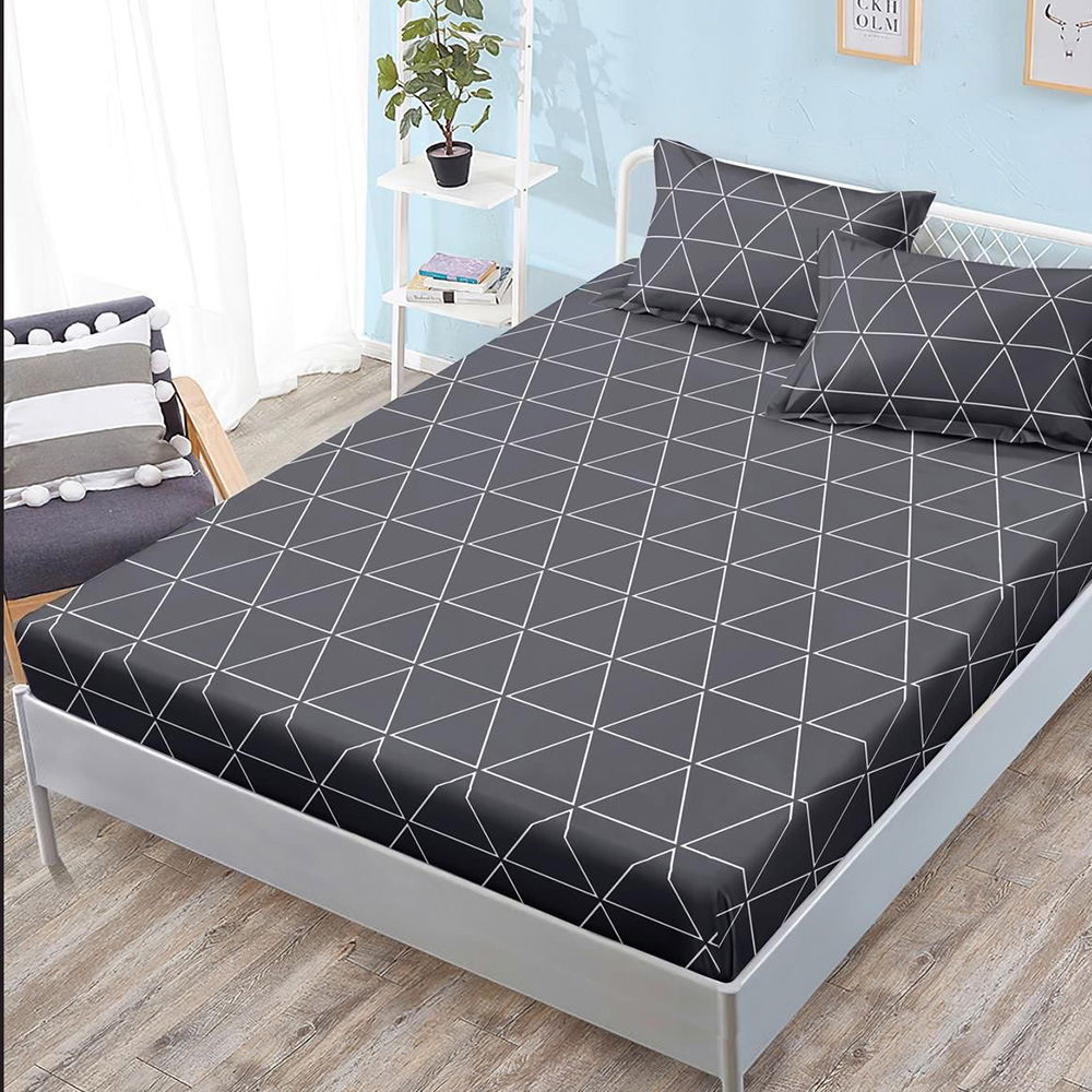 Cearceaf din Bumbac Satinat cu Elastic - 180x200 + 2 Fete Perna - Linii Geometrice - CEFN_K013