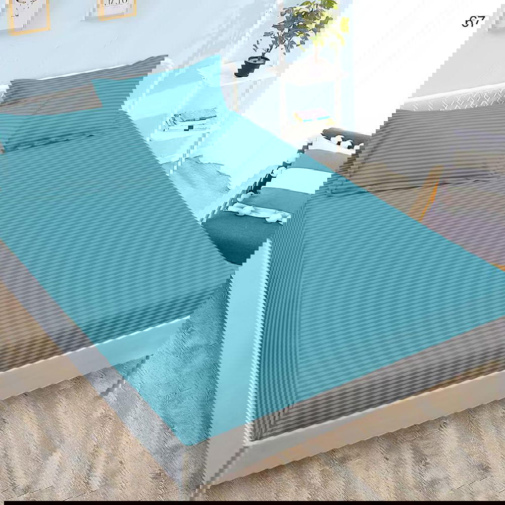 Cearceaf din Damasc Premium cu Elastic - 160/180x200 + 2 Fete Perna - Turcoaz Deschis - CED_K137B