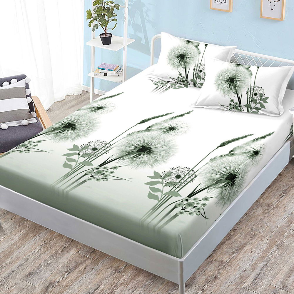 Cearceaf din Finet cu Elastic - 160/180x200 + 2 Fete Perna - Papadie Verde - CEFN_L133B