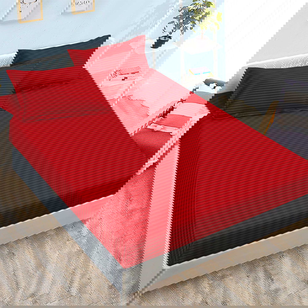 Cearceaf din Damasc Premium cu Elastic - 160/180x200 + 2 Fete Perna - Rosu Intens - CEDM_L101B