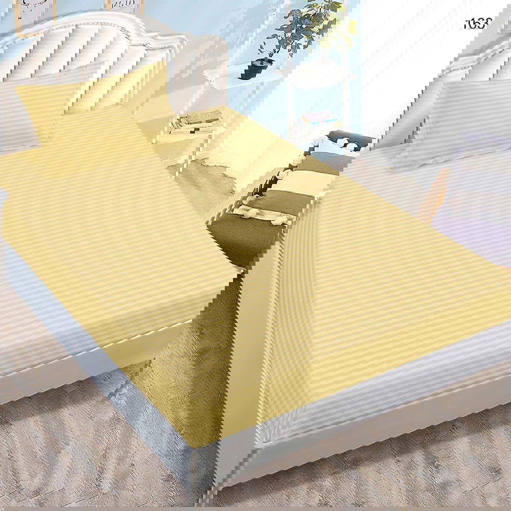 Cearceaf din Damasc cu Elastic - 90x200 + 1 Fata Perna - Crem Intens - CEDX_K120