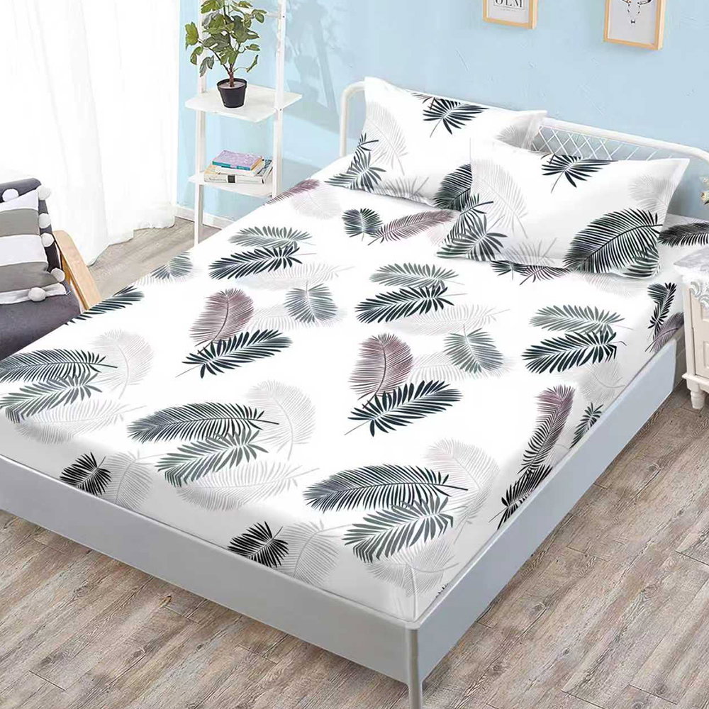 Cearceaf din Bumbac Satinat cu Elastic - 160x200 + 2 Fete Perna - Frunze Palmier - CEFN_L116C