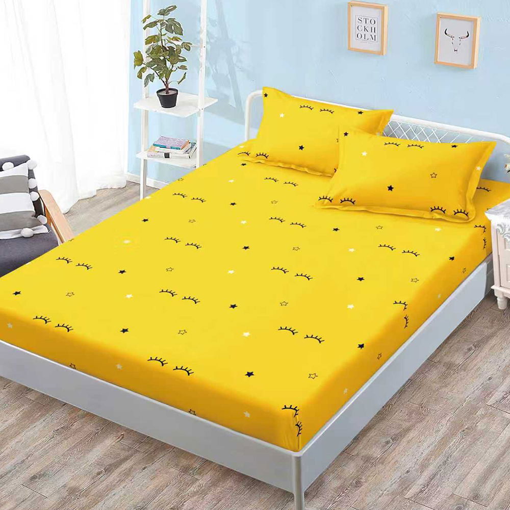 Cearceaf din Bumbac Satinat cu Elastic - 160x200 + 2 Fete Perna - Galben cu Gene - CEFN_L117B