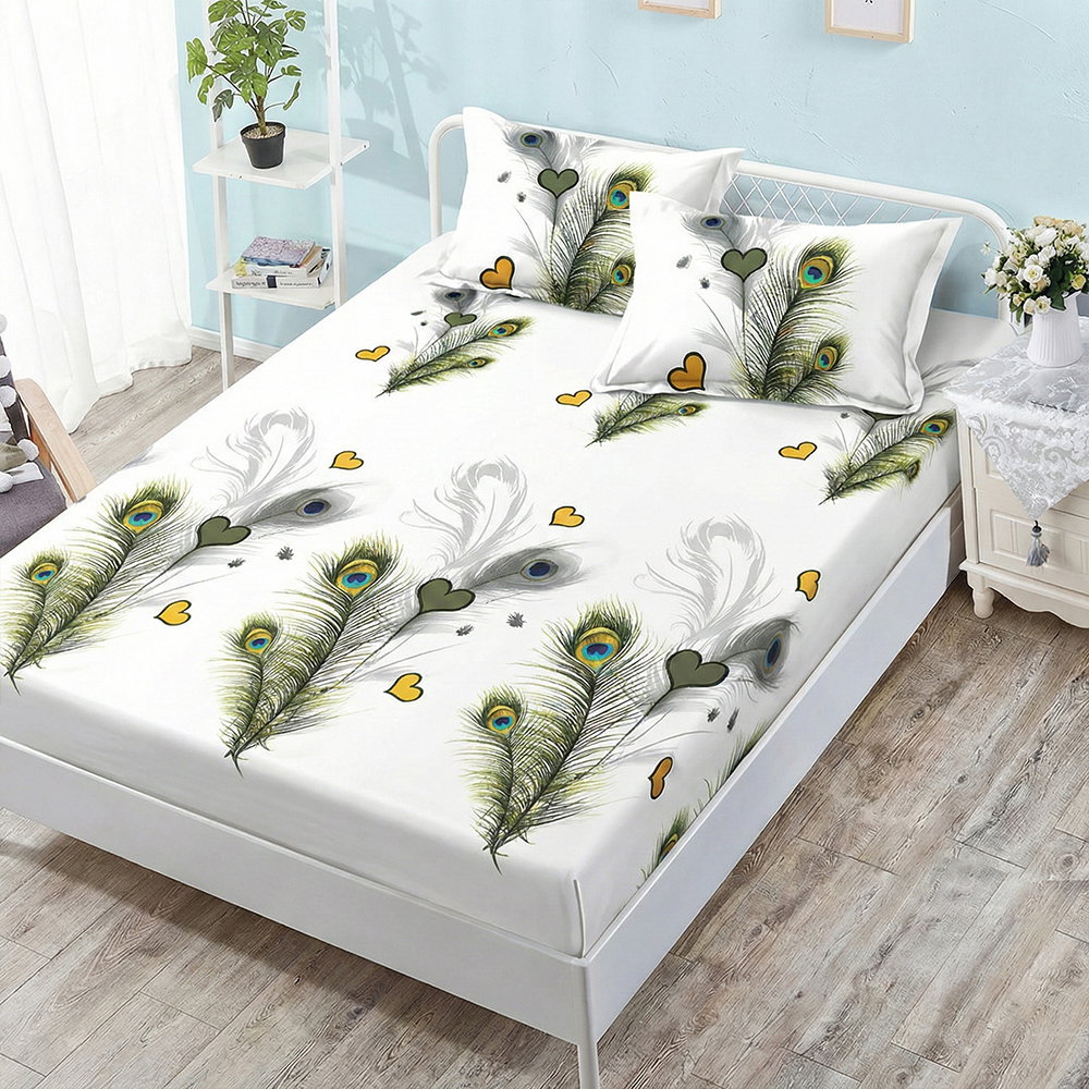 Cearceaf din Finet cu Elastic - 160x200 + 2 Fete Perna - Pene de Paun - CEFR_L069C