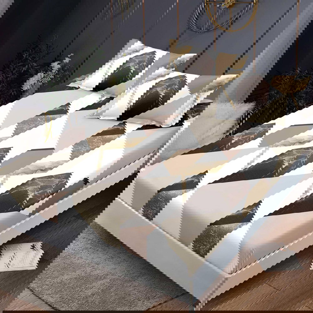 Cearceaf din Finet cu Elastic - 120/140x200 + 2 Fete Perna - Model Marmura - CEFS_M067