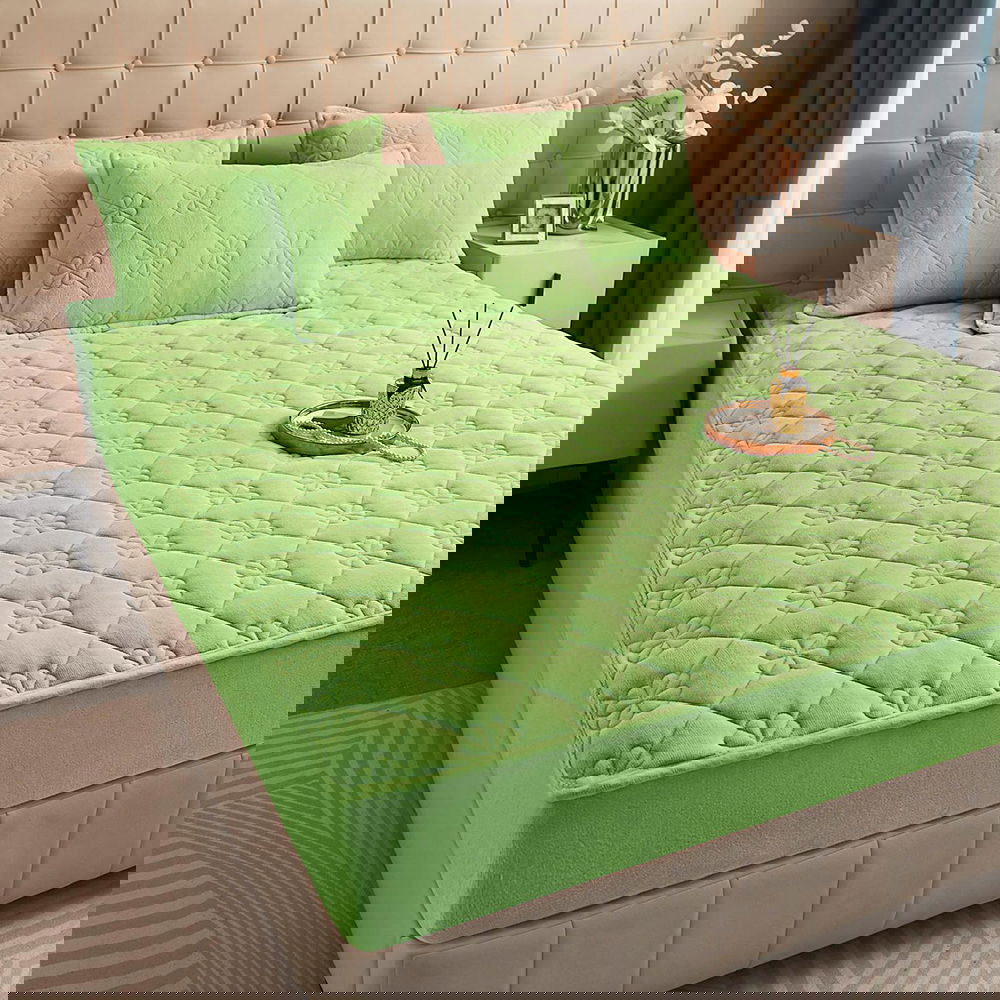 ConfortSoft - Husa de Pat Premium din Catifea Matlasata 140x200 + 2 Fete Perna - Verde Deschis - CECTF_M040