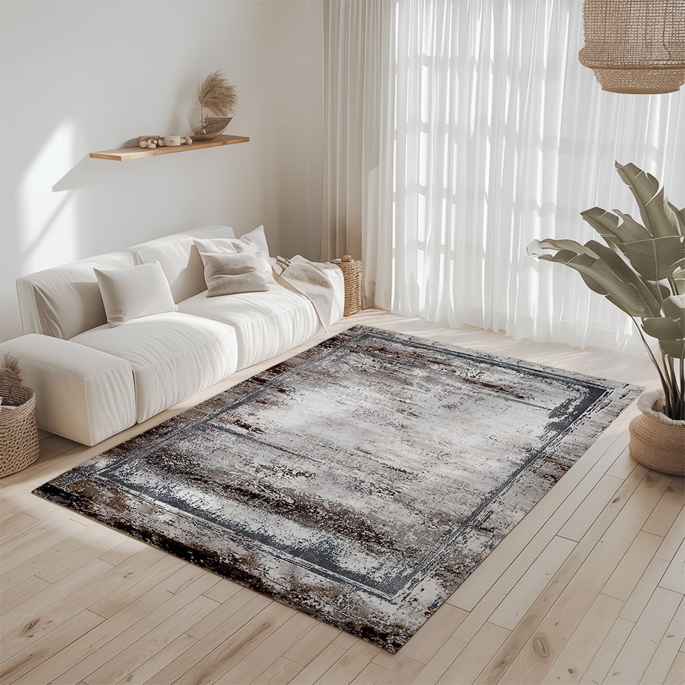Covor pentru Dormitor 80x150 cm - Model Abstract Gri cu Cappuccino - CVHD006_80x150_CVH