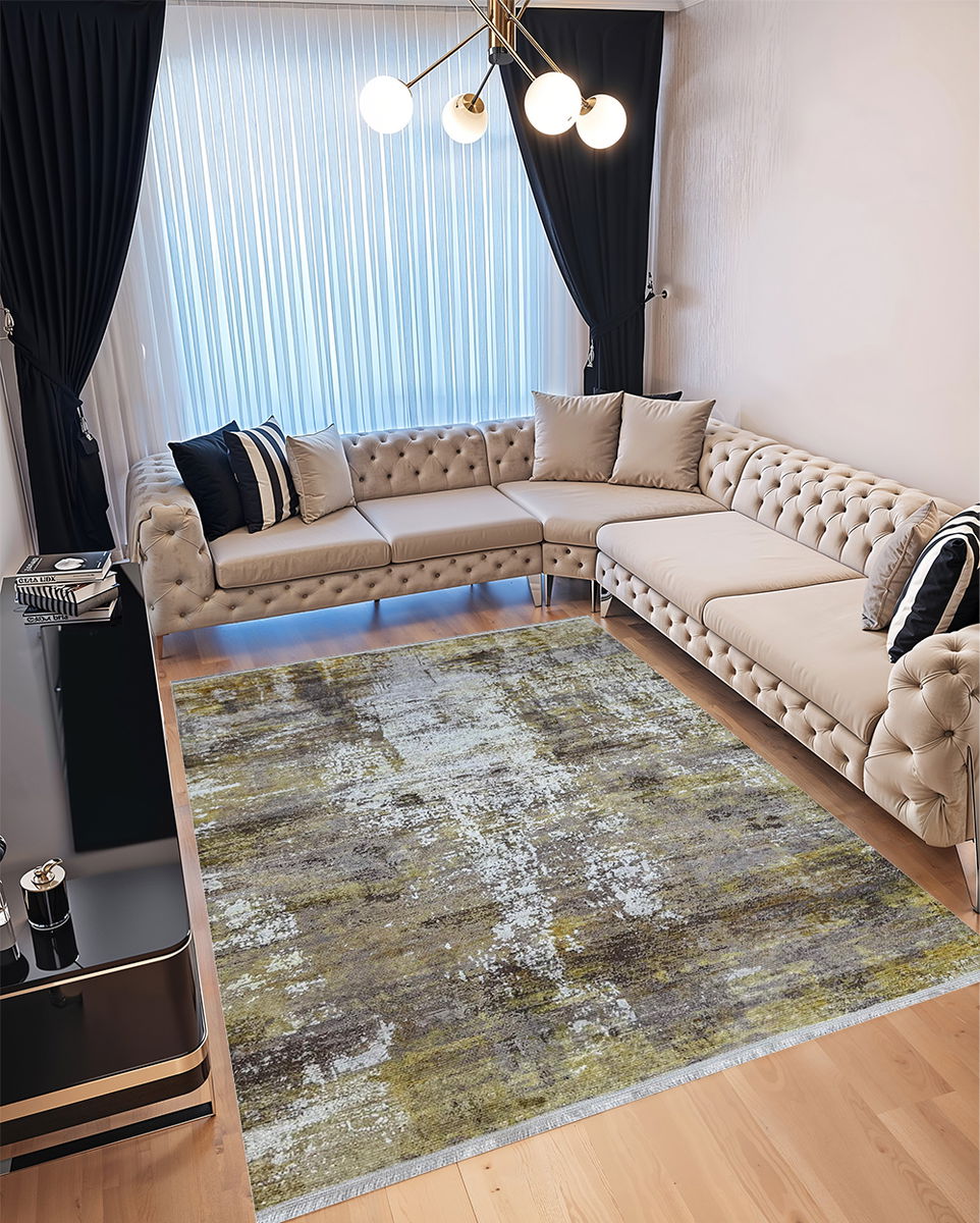 Covor pentru Dormitor 80x150 cm - Model Abstract Maro cu Verde - CVHD001_80x150_CVH