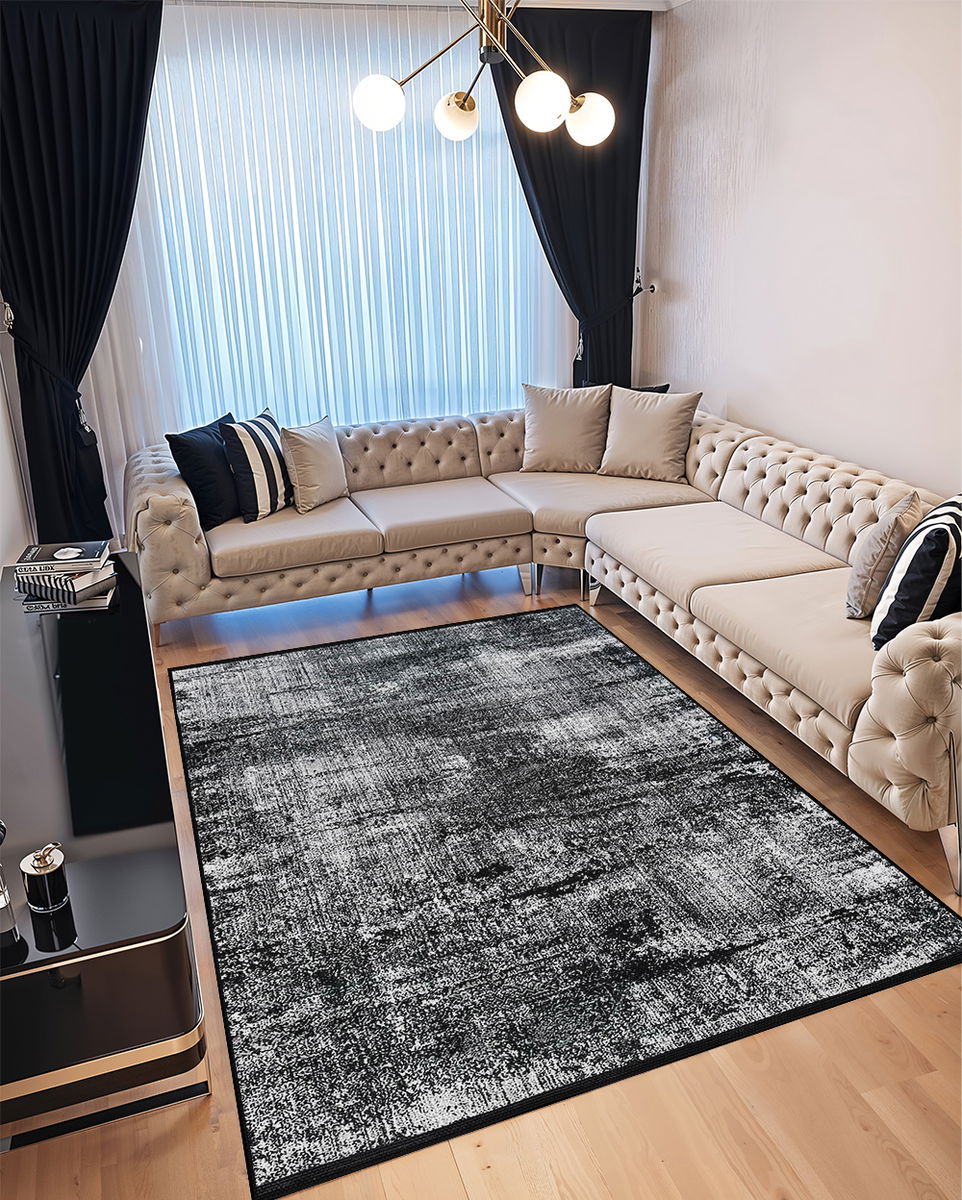 Covor pentru Dormitor 80x150 cm - Model Abstract Gri cu Negru - CVHD016_80x150_CVH