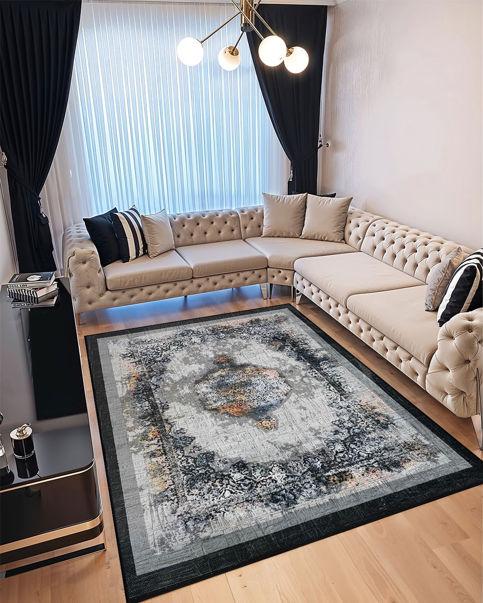Covor pentru Dormitor 80x150 cm - Model Regal Gri cu Negru - CVHD018_80x150_CVH