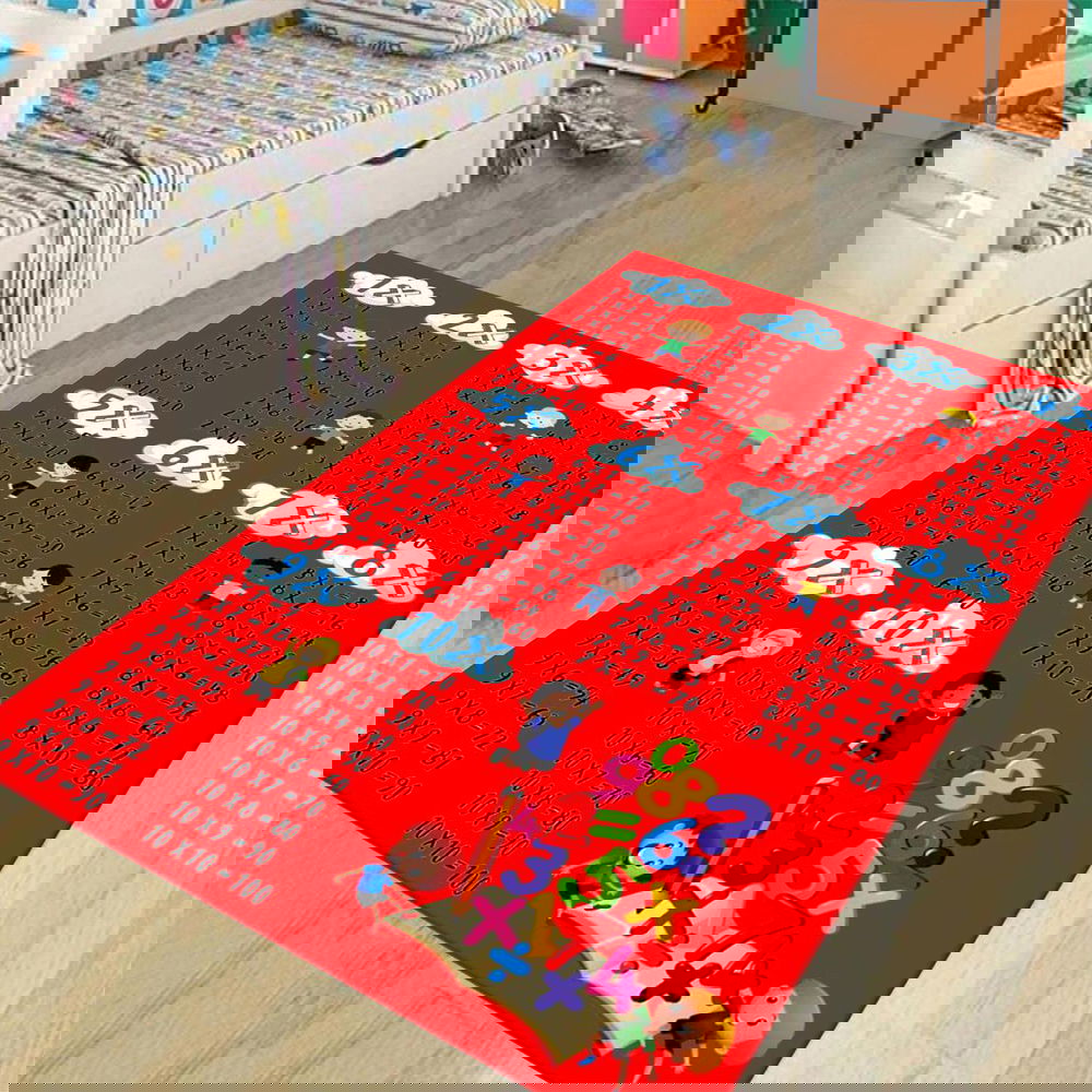 Covor Antiderapant pentru Copii 120x180 cm - Rosu Tabla Inmultirii - CVHC031_120x180_CVH