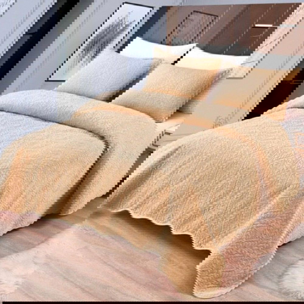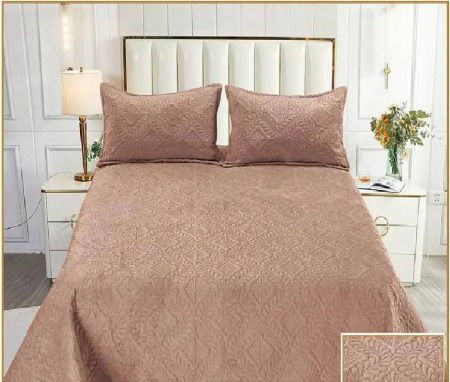 Set 3 Piese Cuvertura de Pat Uni Catifea + 2 Fete de Perna 54x75 cm - Maro Deschis - CVF_M107