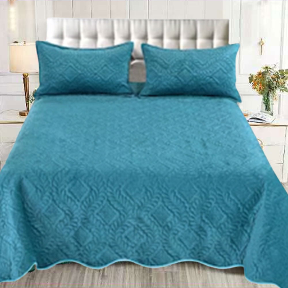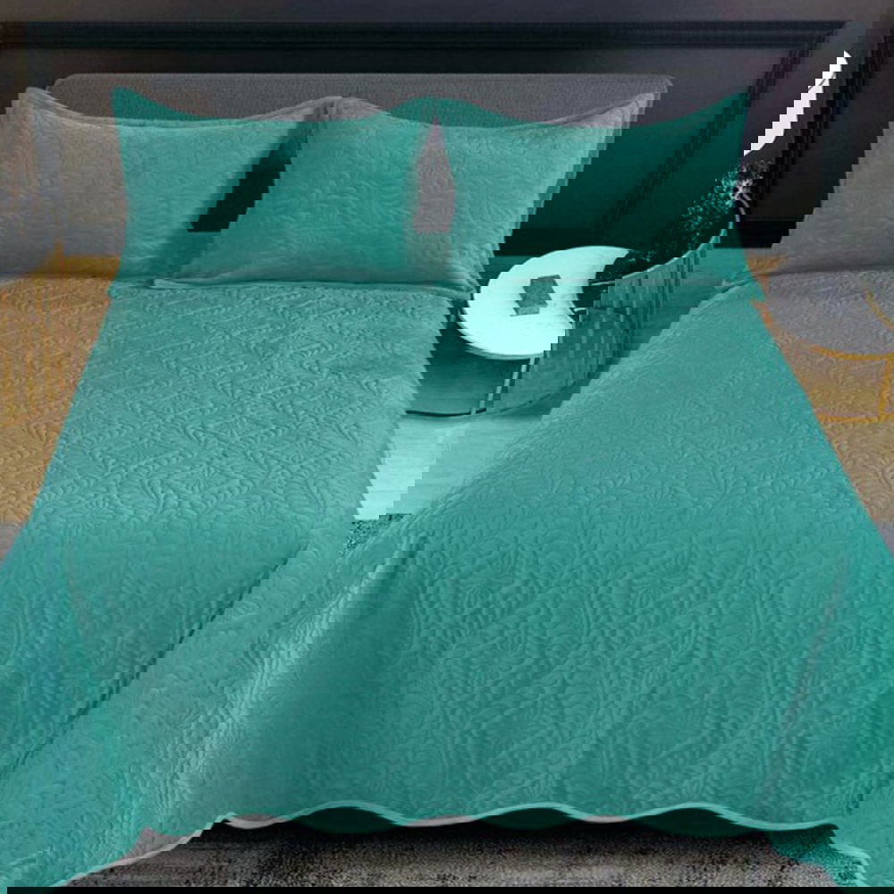 Set 3 Piese Cuvertura de Pat Uni Catifea + 2 Fete de Perna 54x75 cm - Verde Tucoaz - CVF_M102