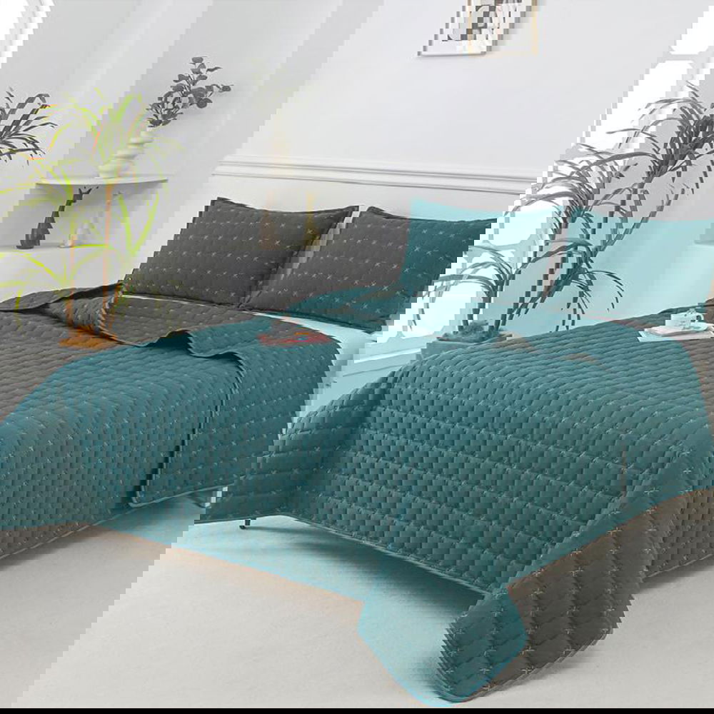 Set 3 Piese Cuvertura de Pat Brodata + 2 Fete de Perna - Tucoaz Inchis - CVBBZ_O004