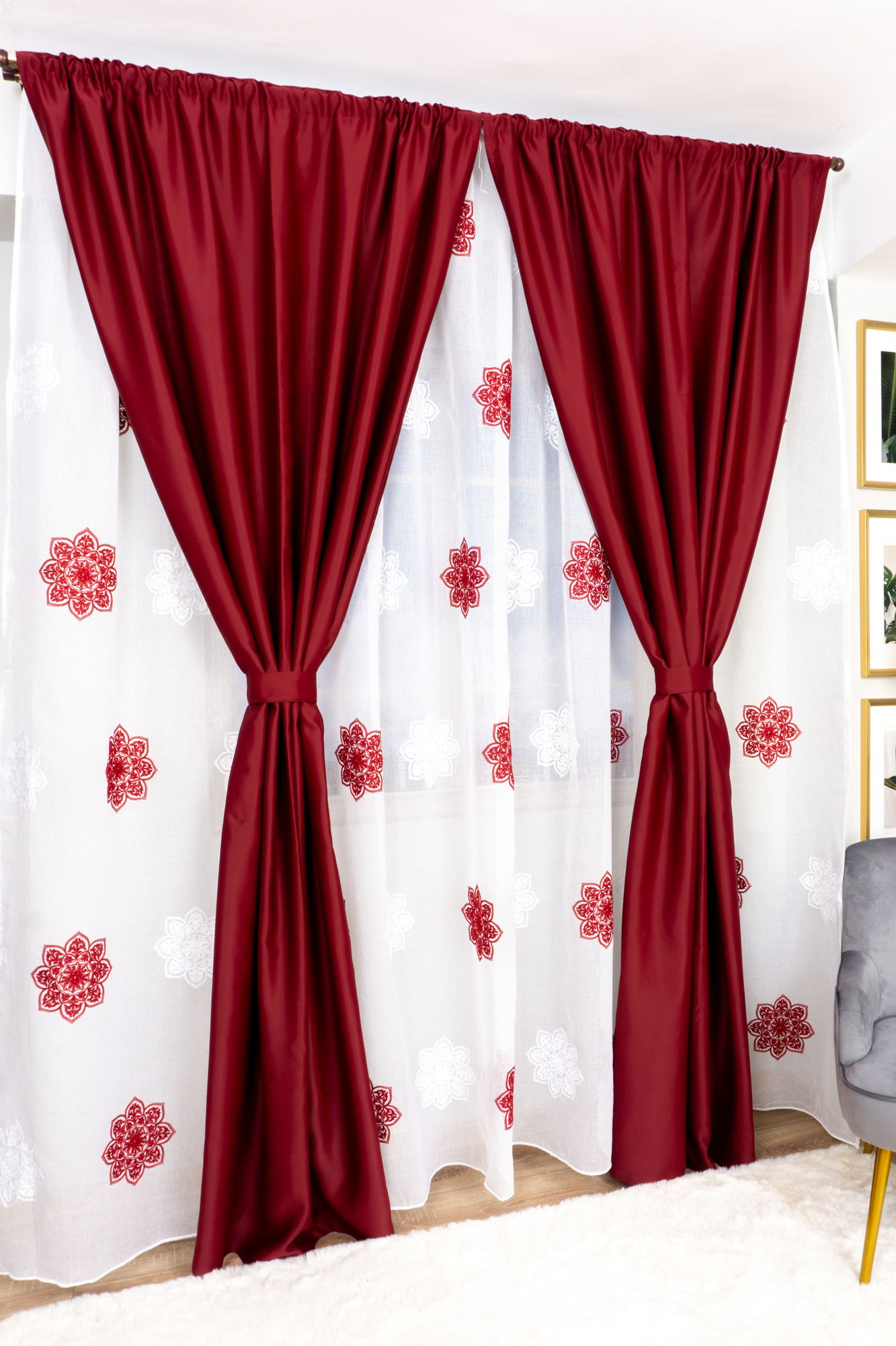 - Locuri Recomandate de Utilizare: Aceasta draperie este potrivita pentru living, dormitor, bucatarie sau oricare alt spatiu in care doresti sa aduci o nota de eleganta.