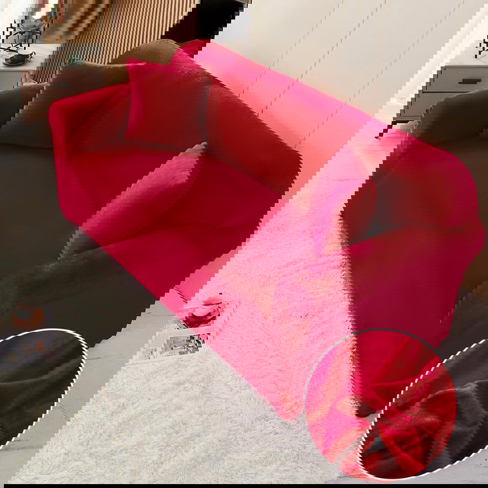 Husa de Canapea din Catifea 3 Locuri - Rosu Regal - HCCJL011