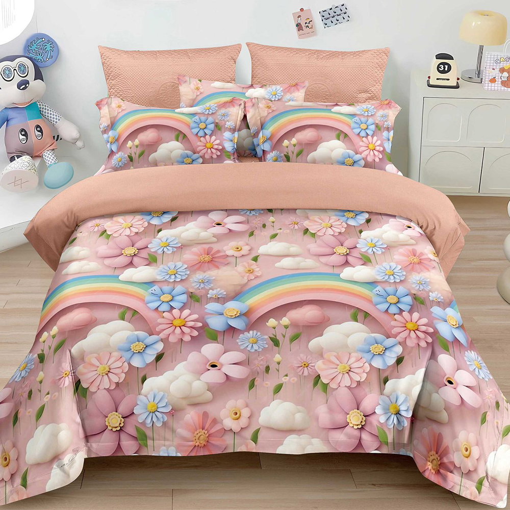 Lenjerie 6 Piese Bumbac Finet 5D - Curcubeul Floral - LFDS_A141D
