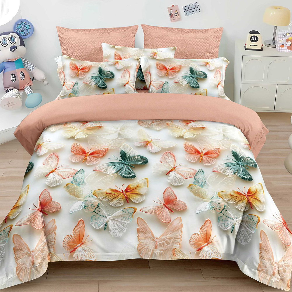 Lenjerie 6 Piese Bumbac Finet 5D - Valsul Fluturilor de Piersică - LFDS_A135D