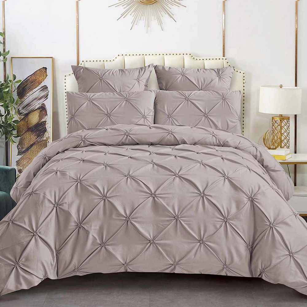 - CONȚINUTUL LENJERIEI: Acest set conține 6 piese: 1 cearceaf de pilotă (dimensiuni: 200x220 cm ±5cm), 1 cearceaf de pat (dimensiuni: 235x240 cm ±5cm), 2 fețe de pernă dreptunghiulare (50x70 cm ±5cm) și 2 fețe de pernă pătrate (70x70 cm ±5cm).