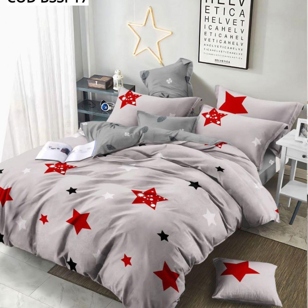 Lenjerie Bumbac Satinat 3D/5D - Stelute pe Fond Gri LBDN_G030B