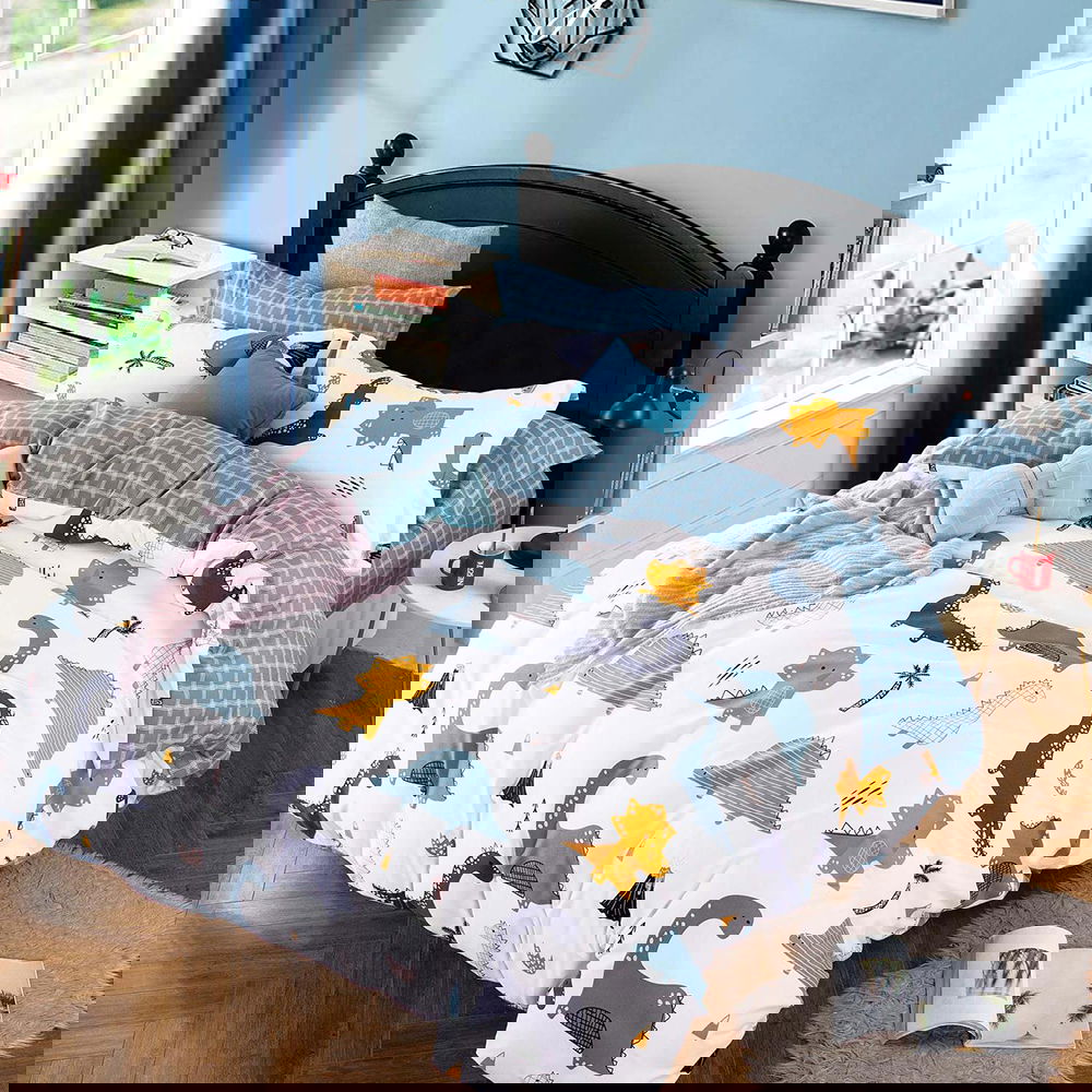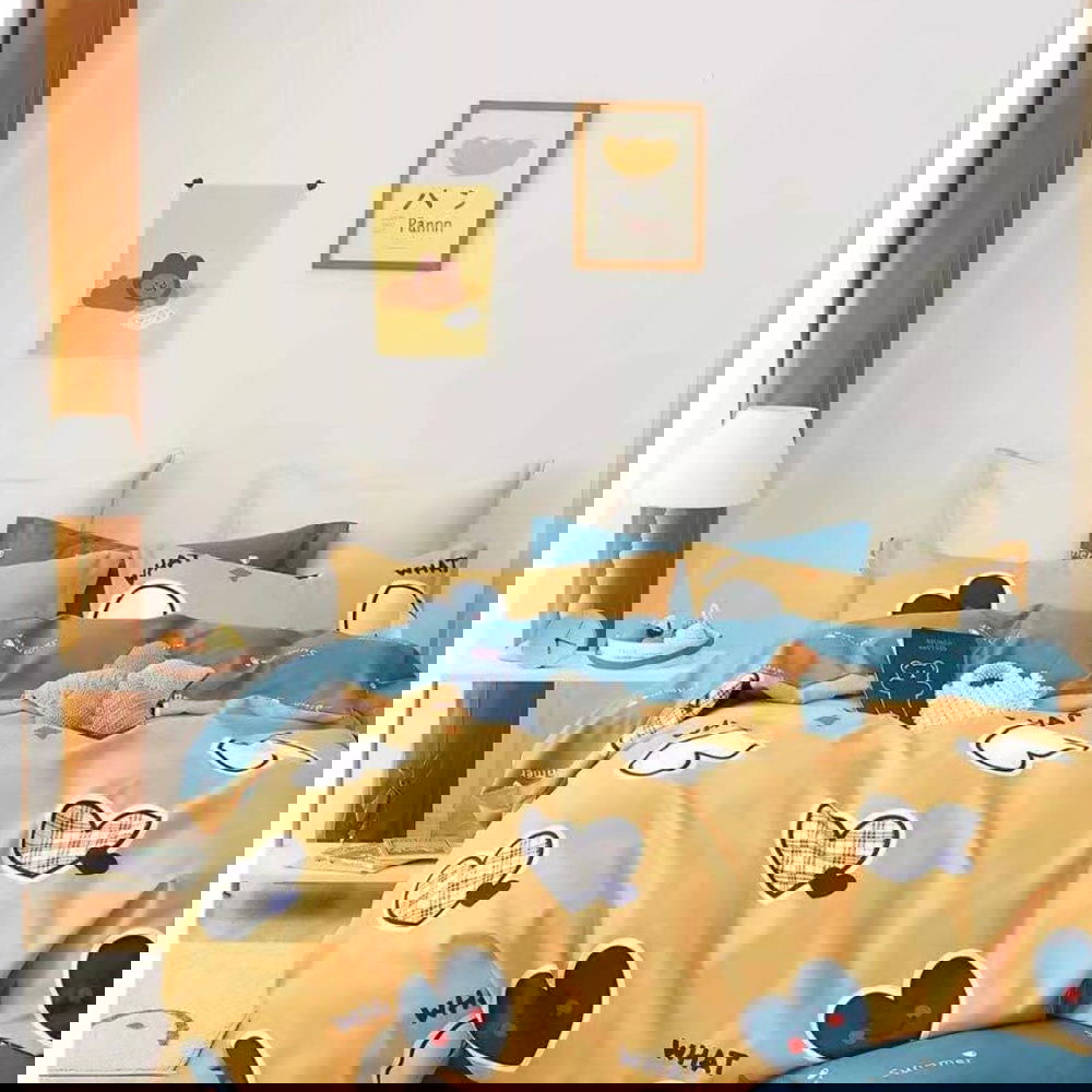 NOTĂ: Pozele afișate sunt cu titlu de prezentare și au scop comercial. Pot exista diferențe de nuanță și de încadrare a imprimeului. Imprimeul cearceafului de pilotă este multiplicat, modelul fiind compus din aceeași imagine repetată de trei ori, la dimensiuni mai mici, imaginea finală fiind astfel încadrată pe toată suprafața cearceafului. Datorită procedurii de croire a pieselor, pot exista diferențe între imaginea cu titlu de prezentare și aspectul final al lenjeriei.