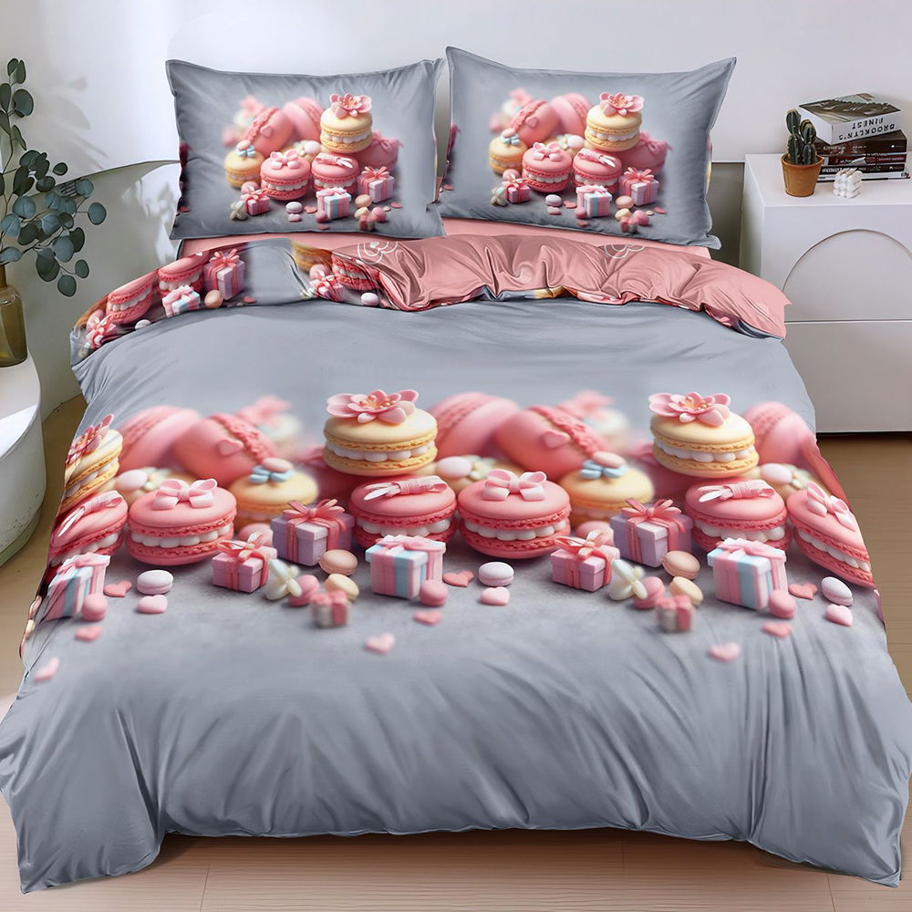 Lenjerie Bumbac Satinat 4 Piese - Gri cu Macarons - LBDP_G114B