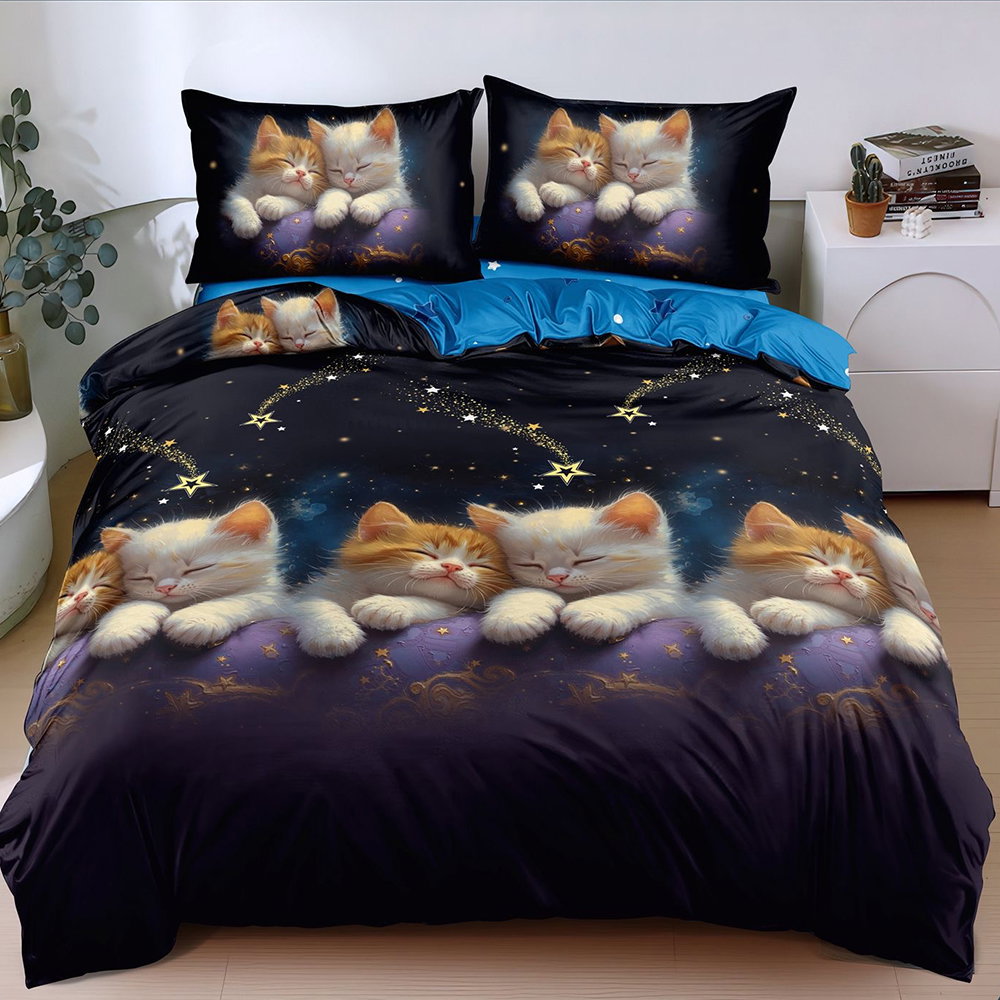 Lenjerie Bumbac Satinat 4 Piese - Pisoi Magici - LBDP_H005B