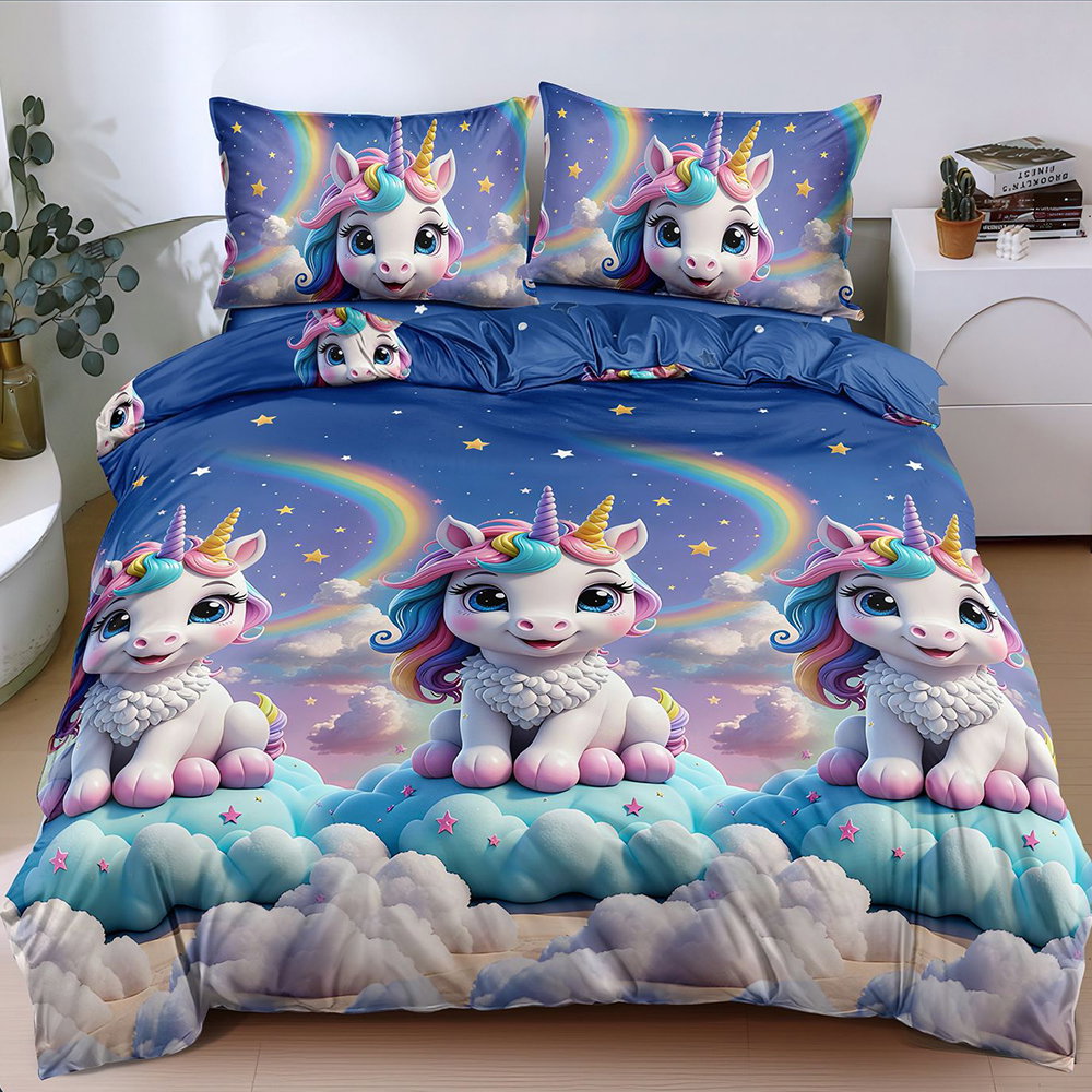 Lenjerie Bumbac Satinat 4 Piese - Unicorn Magic - LBDP_H084C