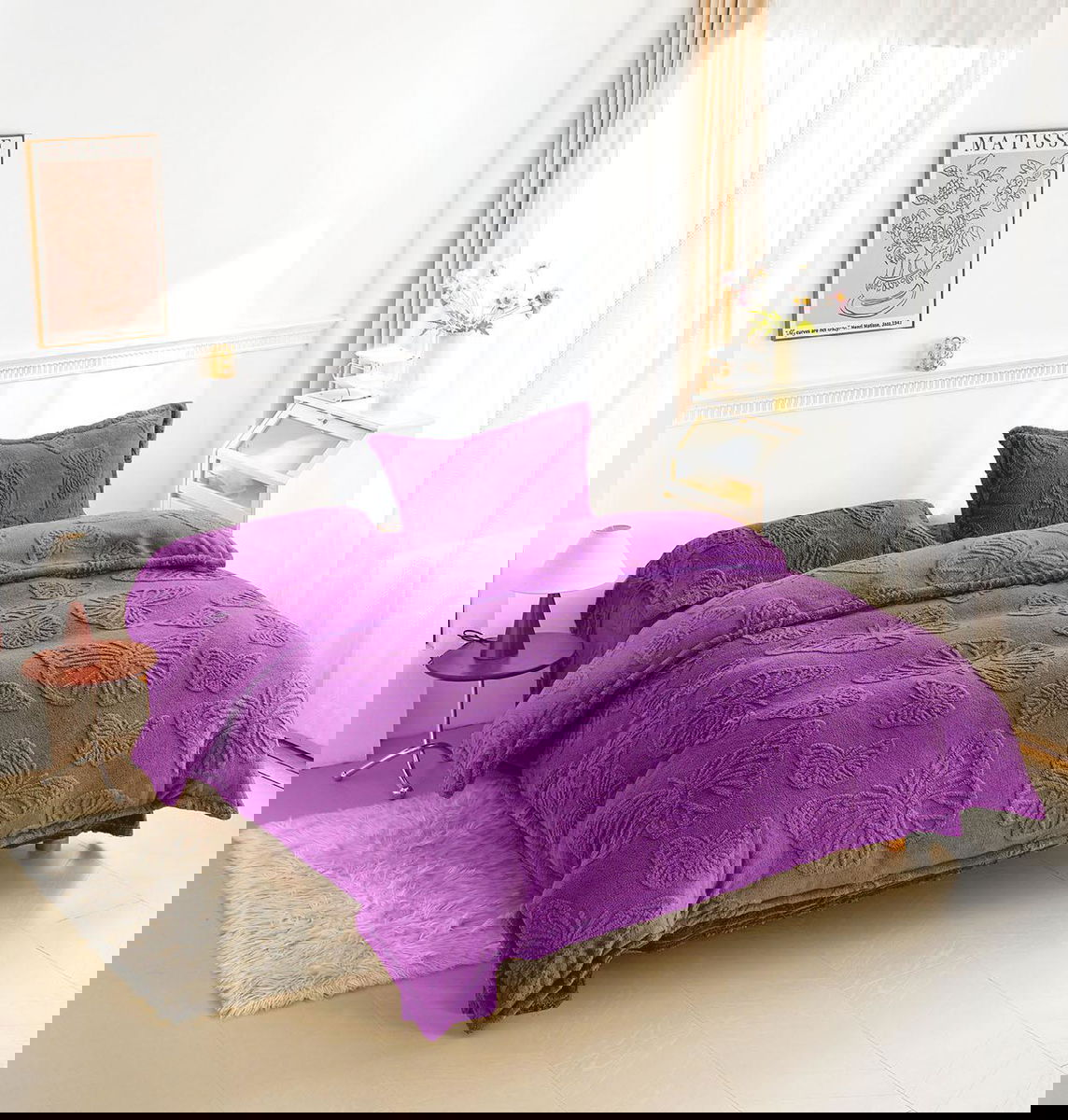 - COMPOZIȚIA LENJERIEI: Compoziția lenjeriei este de 100% microfibră plușată groasă și foarte densă (220 gr/mp), cu textură catifelată și moale la atingere. Nu intră la apă și nu necesită călcare.