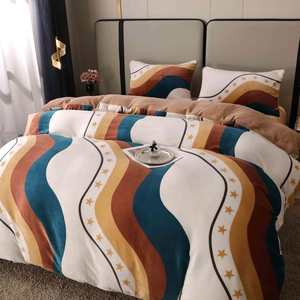 Lenjerie de pat 2 persoane (4 piese) confecționată din material pufos de calitate superioară, foarte moale și plăcut la atingere. Setul este realizat integral din material cocolino, fiind alegerea ideală pentru sezonul rece. Cele 4 piese cu imprimeu modern sunt croite pentru a se potrivi patului tău matrimonial! Îți vor oferi confort și căldură pe toată perioada acestui anotimp! Realizată din materiale fine și moi, această lenjerie îți oferă senzația de a te îmbrățișa într-un nor de blândețe la fiecare pas pe care îl faci în lumea viselor tale. Cu un design elegant și culori care încântă, acest set adaugă un strop de eleganță fiecărui moment petrecut în dormitorul tău. Creează o atmosferă relaxantă și bucură-te de un somn odihnitor cu Lenjeria Cocolino, alegerea perfectă pentru tine și pentru un dormitor în care să te simți acasă în fiecare clipă.