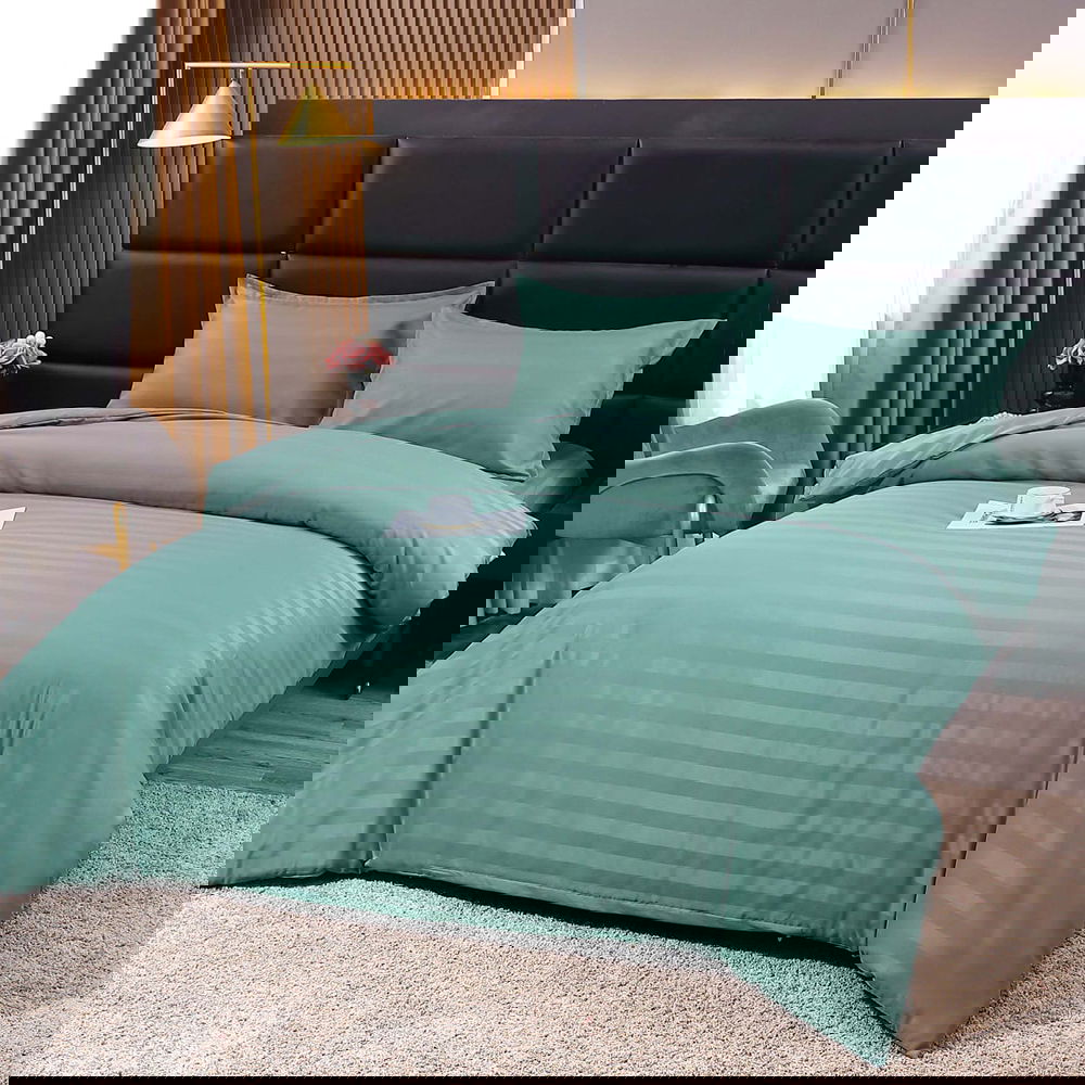 Lenjerie de Pat Damasc Premium 4 Piese cu Cearceaf Elastic - Menta - LDEB_I070