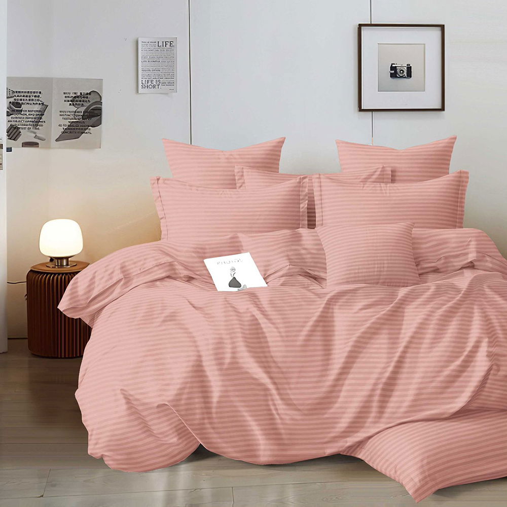 Lenjerie de Pat Damasc Premium 4 Piese cu Cearceaf Elastic - Roz Piersica - LDEM_I077