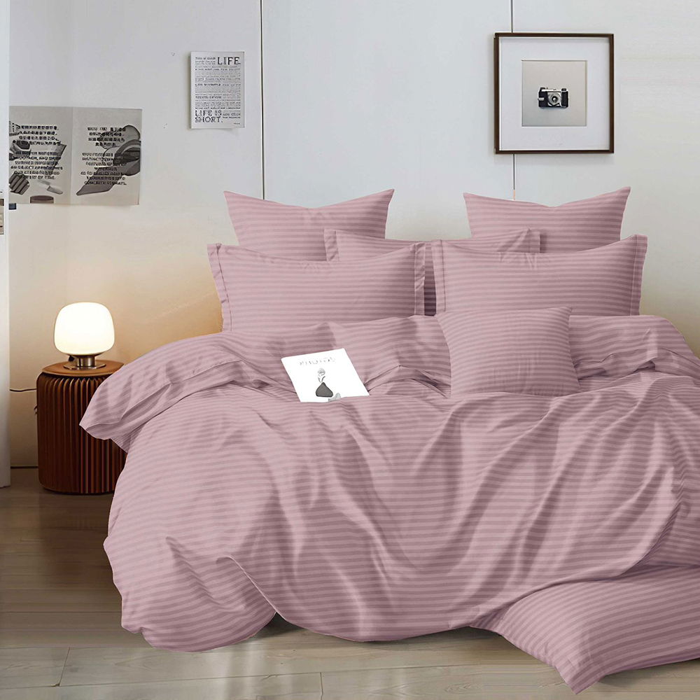 Lenjerie de Pat Damasc Premium 4 Piese cu Cearceaf Elastic - Roz Pudra - LDEM_I074