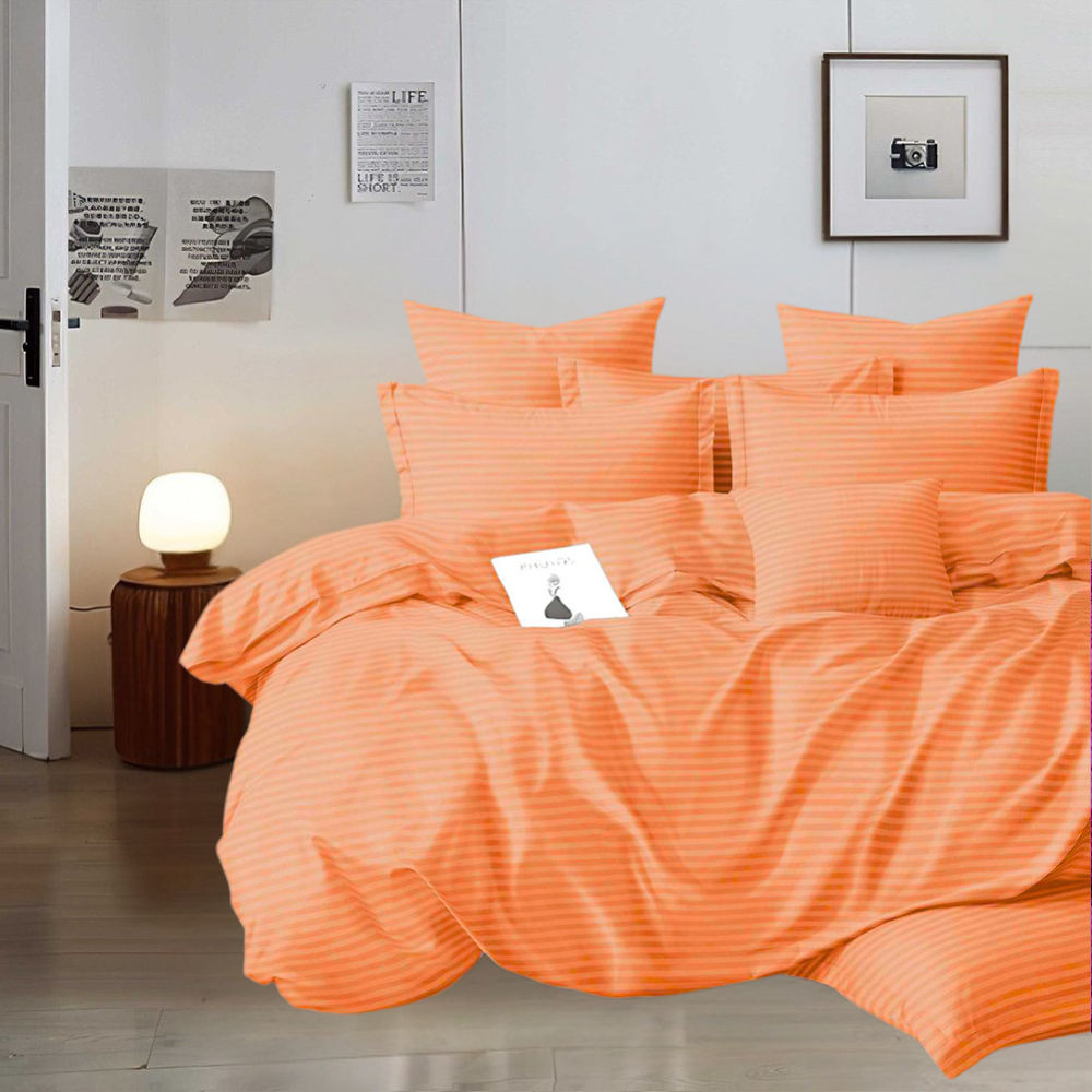 Lenjerie de Pat Damasc Premium 6 Piese cu Cearceaf Elastic - Orange - LDES_H043C