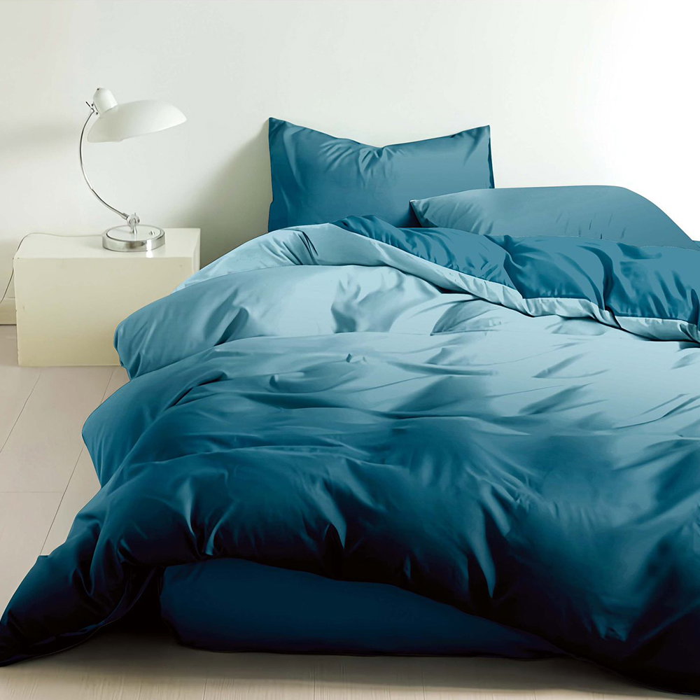 Lenjerie de Pat din Finet cu Elastic 160/180x200 - 6 Piese - Albastru Degrade - LFEM_A038