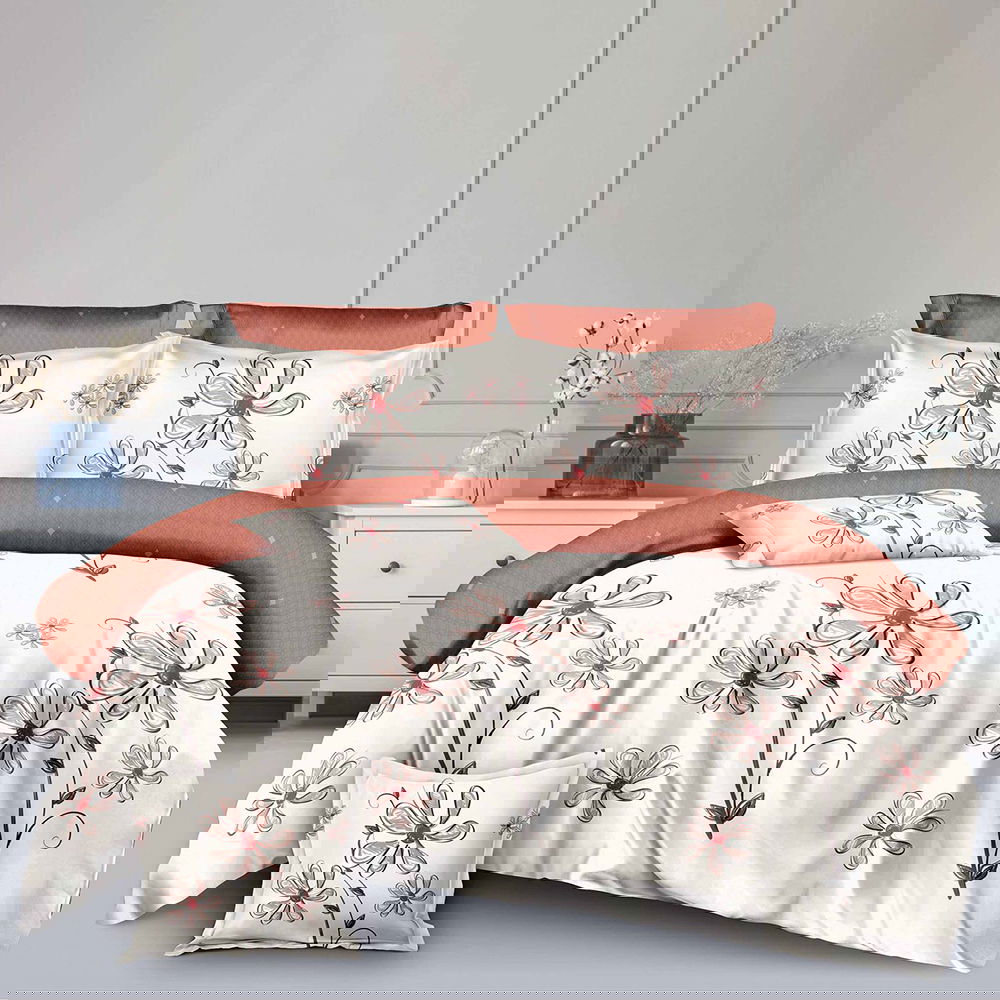 Lenjerie de pat 2 persoane (6 piese) confecționată din bumbac finet premium cu textură mega rezistentă, foarte plăcută la atingere. Datorită amestecului optim de bumbac din compoziție, această lenjerie asigură confort sporit și este potrivită în orice perioadă a anului. Nu este nici prea groasă, dar nici subțire, ci ideală pentru a-ți decora dormitorul, indiferent de anotimp! Țesătura este una rezistentă, iar dacă lenjeria este întreținută corespunzător, culorile se vor menține la fel de intense ca în prima zi, indiferent de numărul de spălări. Toate cele 6 piese din set conțin bumbac finet de calitate superioară!
