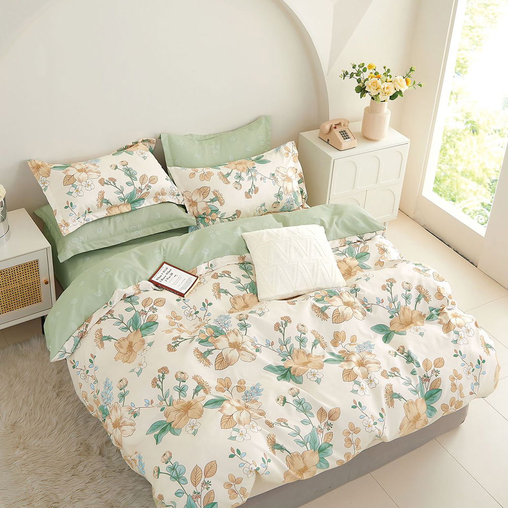 Lenjerie de Pat din Finet cu Elastic 6 Piese - 160/180x200 de Pucioasa - Crem Flori de Toamna - LFEN_D015B